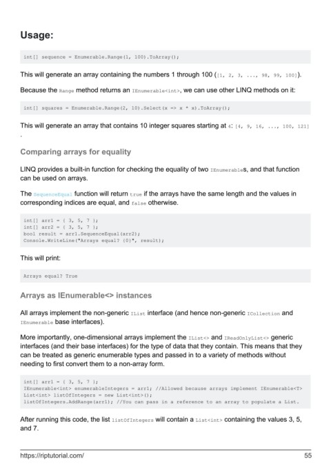Because the Range method returns an IEnumerable<int>, we can use other LINQ methods on it: