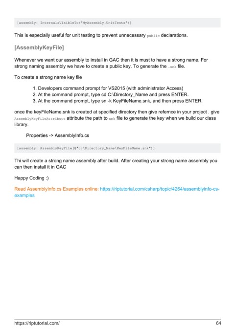 Read AssemblyInfo.cs Examples online: https://riptutorial.com/csharp/topic/4264/assemblyinfo-cs-