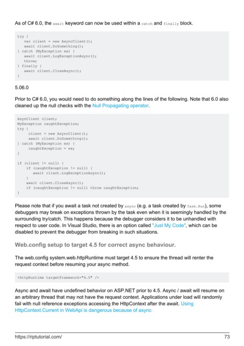 Please note that if you await a task not created by async (e.g. a task created by Task.Run), some