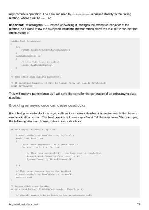 asynchronous operation. The Task returned by GetByKeyAsync is passed directly to the calling