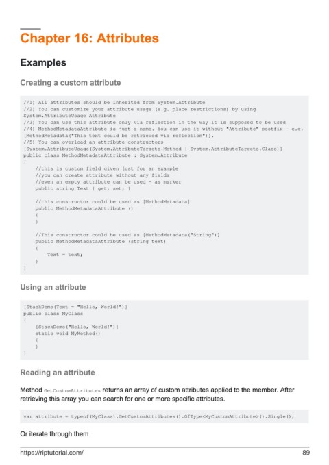 Method GetCustomAttributes returns an array of custom attributes applied to the member. After