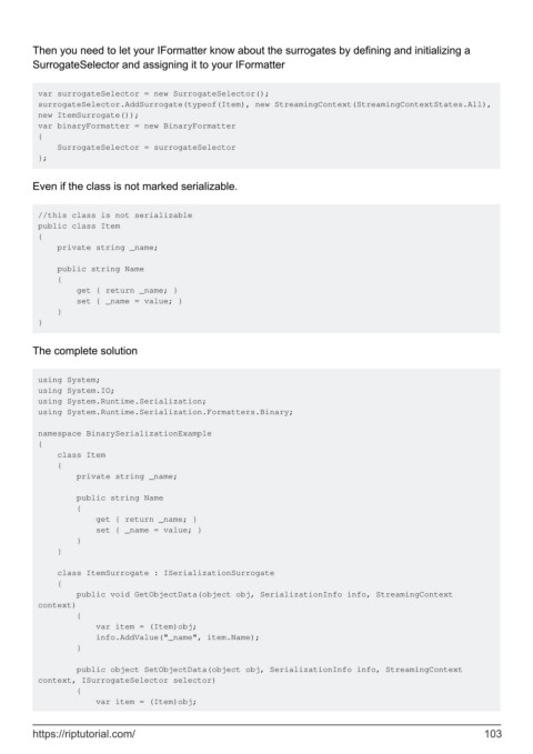 Then you need to let your IFormatter know about the surrogates by defining and initializing a