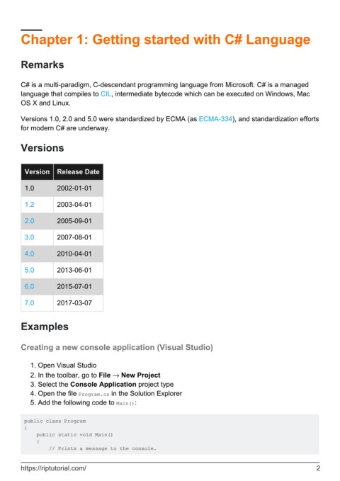 Chapter 1: Getting started with C# Language