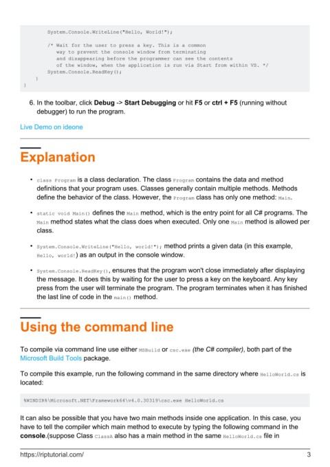 To compile this example, run the following command in the same directory where HelloWorld.cs is